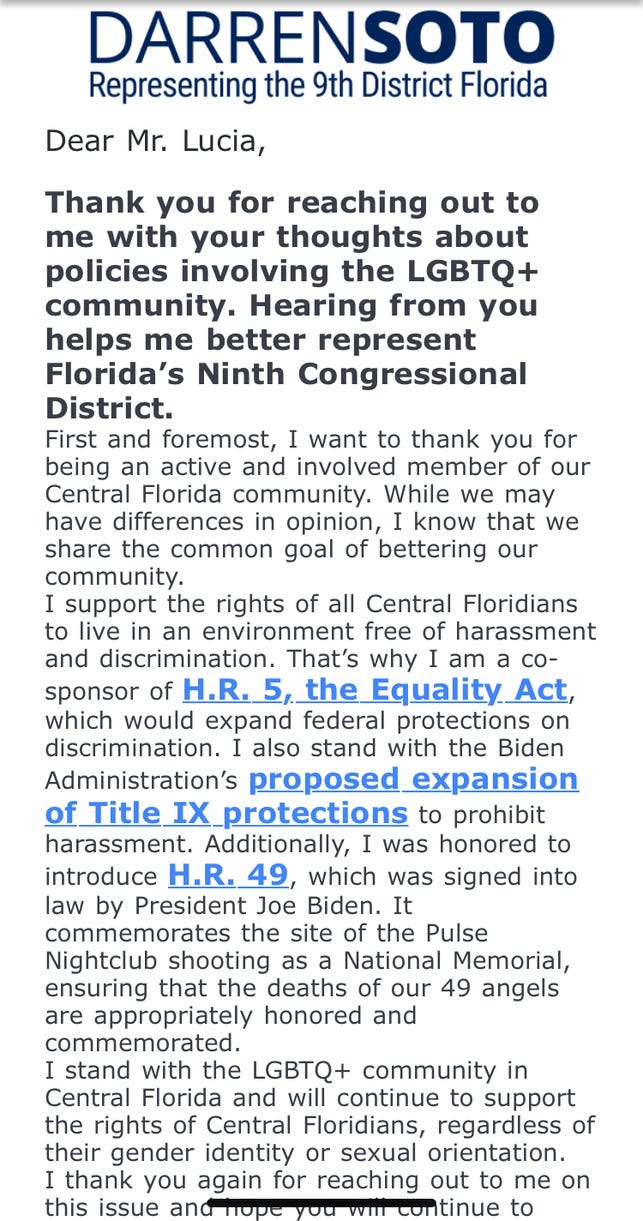 When I write to my representative in Congress, expressing that I reject the term ‘LGBTQ+’ and explaining my issues with the harms ‘gender identity’ poses on gay people, I get a response ignoring everything I wrote.