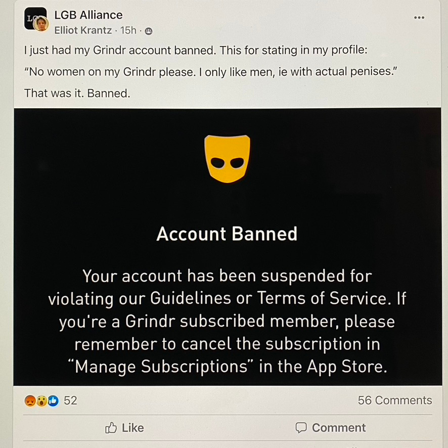 ‘The broader LGBTQ+ community’. The message is clear: We don’t care what you think. Gay men are not allowed to be simply gay anymore. You are only allowed to be ‘part of the LGBTQ+ community’. That includes ‘trans’, and ‘trans’ will always take precedence.