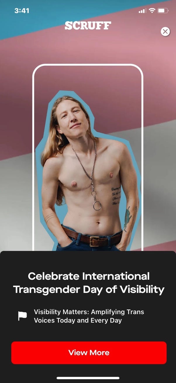 Worse, they promote ‘trans’—the ‘gay apps’ are pushing gay men to transition. When you open up the app, you see ads like this: