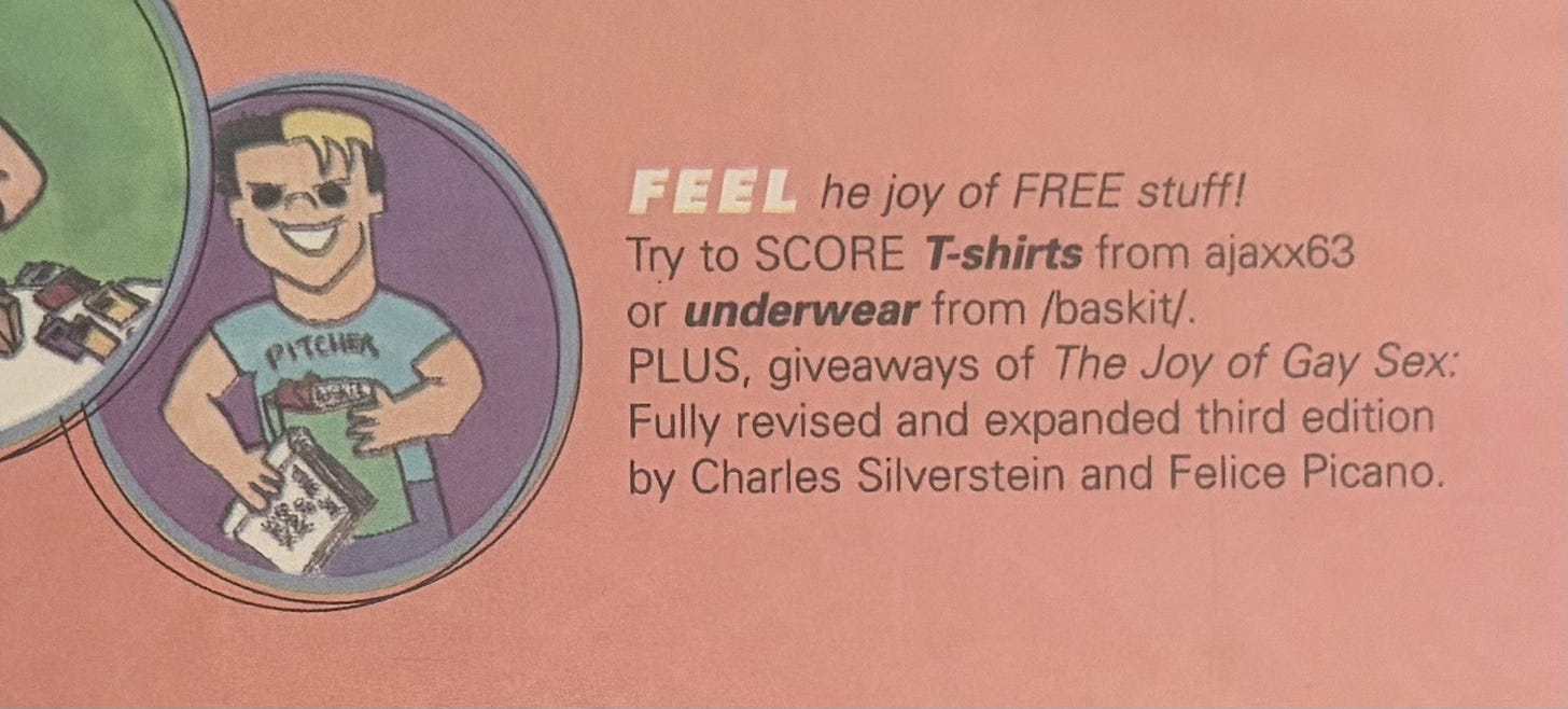 [Fun side note: Back in 2003, when I was having a big ‘coming out’ party for my comic strip at a gay nightclub, I got sponsorships from a bunch of companies, including an underwear brand called ‘baskit’.]